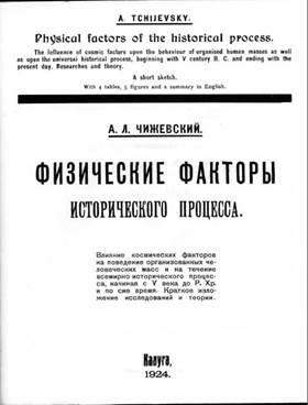 Совершенно новые взгляды на проблемы, находящиеся на стыке естественных и гуманитарных наук, позднее обобщены им в монографиях “Физические факторы исторического процесса” (Калуга, 1924 г.) и “Эпидемиологические катастрофы и периодическая деятельность Солнца” (Москва, 1930 г.).