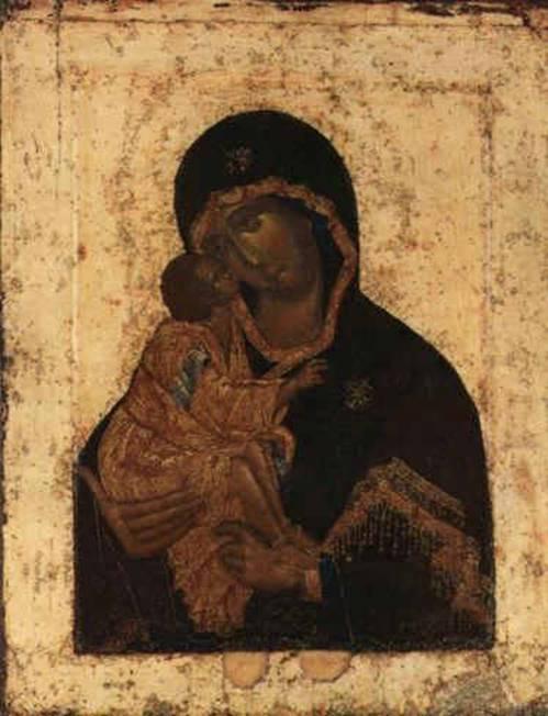Написанная в 70—80-х годах XIV в. двусторонняя икона Донской богоматери (переданная в Третьяковскую галерею из московского Благовещенского собора) признается теперь работой либо Феофана Грека (воспринявшего некоторые замечательные достижения новгородской школы), либо высоко одаренного новгородского мастера, испытавшего его влияние. Это один из шедевров древнерусской живописи.[17]