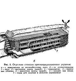 Безмолвно также строительство убежищ в виде отдельно стоящих сооружений. Такие убежища полностью или частично заглублены и обсыпаны сверху и с боков грунтом. Под них могут быть приспособлены различные подземные переходы и галереи, метрополитены, горные выработки.