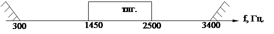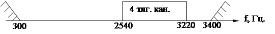 Таким образом полный спектр, занимаемый всеми 1б-ю каналами размещается в полосе частот 380 – 3220 Гц. (Рис. 11)