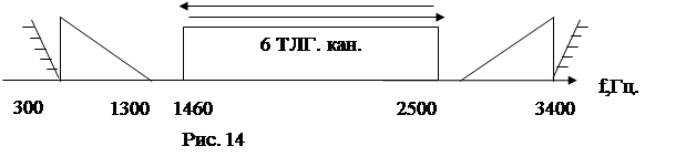Передача и прием всех 6-ти телеграфных каналов будет осуществляться в полосе частот 1460-2500Гц. (рис. 14 )