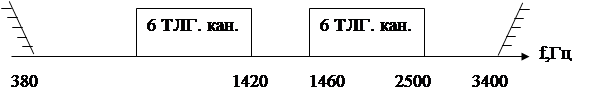 позволяет образовать 6 телеграфных каналов в полосе частот 380-1420Гц или 1460-2500Гц.