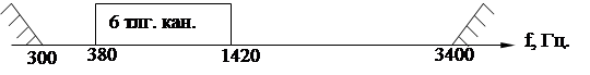 Передача и прием всех 6-ти телеграфных каналов будет осуществляться в полосе частот 380-1420Гц. (рис.1З )