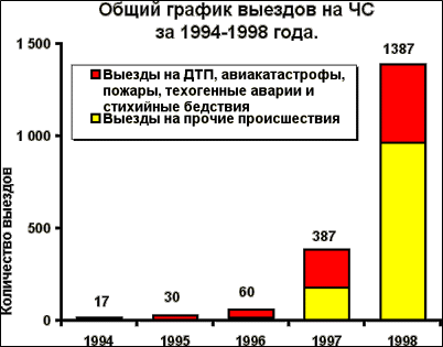 Анализ чрезвычайных ситуаций, имевших место на территории Российской Федерации в 1998 году, показал, что их количество, несмотря на некоторое снижение по сравнению с 1997 годом, по-прежнему, остается на высоком уровне. Количественные показатели и динамика чрезвычайных ситуаций на территории Российской Федерации за период 1993 - 1998 годы приведены в приложении (графики 1 и 2).