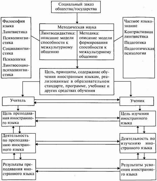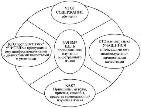 Обучение иностранному языку — это процесс двусторонний. Он, как, впрочем, и обучение любому учебному предмету, включает в себя в их единстве обучающую деятельность учителя и учебную деятельность (изучение языка) учащегося, направленную на усвоение языка/овладение языком (см.: Дидактика средней школы... , 1982; и др.). Единство преподавания и учения трактуется в отечественной дидактике как объективная, инвариантная характеристика обучения, в то время как единство воспитания и обучения, взятое в дидактическом плане, составляет вариативную характеристику обучения (см.: Теоретические основы процесса..., 1989).
