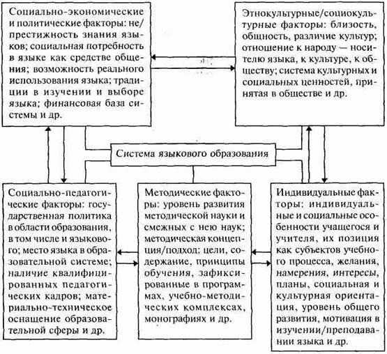 Как известно, языковое и культурное многообразие России, одного из крупнейших полиэтнических государств, где проживают, по последним данным, 176 народов, наций и национальных групп, есть одно из исторических и культурных ее наследий (схема 1). По этому в понятие «языковое образование» граждан страны вкладывается широкий смысл — овладение наряду с родным и иностранными языками любыми неродными языками народов России (см.: Европейская хартия..., 1994; Красная книга языков народов России, 1994).