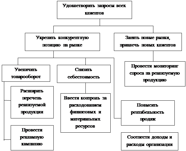 Миссия СООО «Парфюмбытхим» - всегда соответствовать потребностям современного бизнеса, оперативно оказывать клиентам высококачественные услуги, тем самым способствовать успеху бизнеса партнеров. В рамках данной миссии можно сформулировать цели, стоящие перед СООО «Парфюмбытхим» и представить их графически в виде дерева целей (рисунок 1).