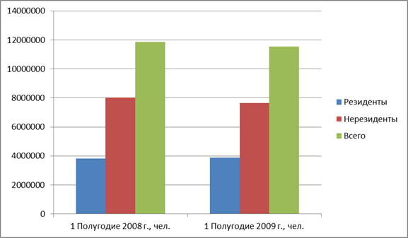 По сравнению с аналогичным периодом 2008 года, в первой половине 2009 года наблюдалось снижение активности внутреннего туризма (путешествия резидентов)