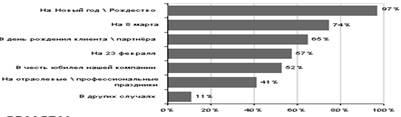 Проведя специальное исследование, направленное на изучение существующей политики в области подарков выявлено, что 50% опрошенных дарят подарки своим близким, знакомым и др. на основные всенародные праздники и дни рождения. Одной из особенностей рынка подарочной продукции является его сезонность