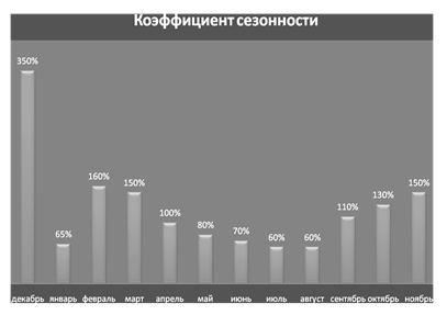 . Процент сезонности магазина ТМ «Bibelots» представлен в Приложении 1.