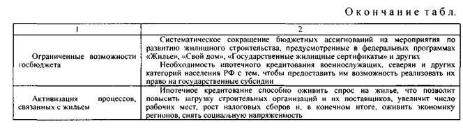 В условиях хронического недостатка государственных средств традиционной задачей для органов власти всех уровней стало привлечение внебюджетных денежных ресурсов в сферу жилищного строительства. Наиболее перспективным решением «квартирного вопроса» специалисты в области недвижимости считают развитие системы долгосрочного ипотечного кредитования [120, с. 174].