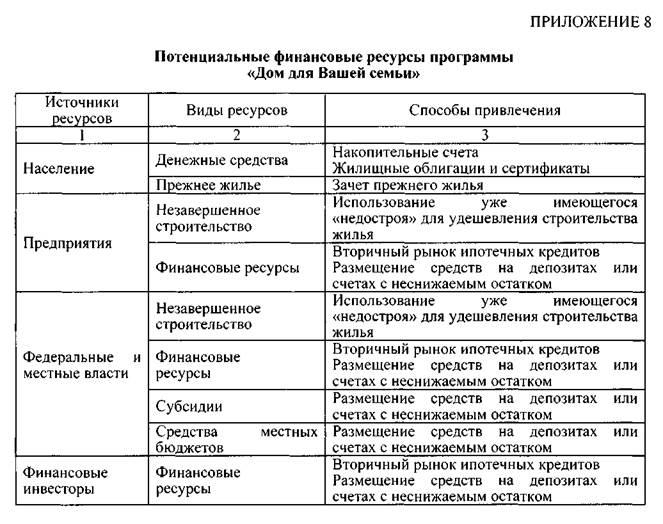 • привлечь в жилищную сферу сбережения населения и другие внебюджетные финансовые ресурсы;