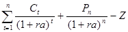 В частном случае, когда все денежные выплаты по ценной бумаге (денежные поступления ее владельцу) происходят одновременно в форме погашения по цене Pn