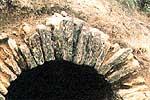 СОХРАНИВШИЙСЯ УЧАСТОК водного канала (слева), покрытый толстым слоем кальциевых отложений. Канал в основном проходил под землей. Та его часть, где текла вода, имела квадратное сечение (со стороной 1,2 м). Общая высота канала, вместе со сводом, – 1,8 м, достаточная для того, чтобы рабочие, обслуживавшие канал, могли стоять в нем в полный рост. В местах выхода водовода на поверхность, например на Пон-дю-Гаре (справа), стены были выше 1,2 м, а вместо свода использовали каменные плиты. |