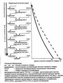 продовольственной группе товаров. Причина - высокая интенсивность грузовых потоков, а, следовательно, и большие резервы повышения эффективности от логистического подхода к управлению ими. И сегодня в зарубежной литературе термин логистика наиболее часто употребляется в плане управления потоками продовольственных товаров.