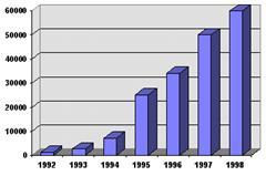 Примечание: Количество абонентов за 1996 и 1997 года взяты из специальных источников, данные за 1998 год взяты из опубликованных материалов, данные по количеству абонентов, которые приводятся далее в тексте, взяты из опубликованных материалов и могут отличаться от приведенных в таблице.