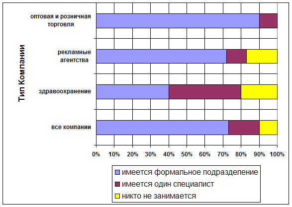 В ряде случаев на фирме назначается только один специалист, ответственный за маркетинговые исследования. Он может проводить сам ограниченные маркетинговые исследования, но главным для него является оказание помощи руководителям в осознании необходимости проведения соответствующих их марке типовых исследований и организации покупки результатов таких исследований у консультационных фирм по маркетинговым исследованиям.