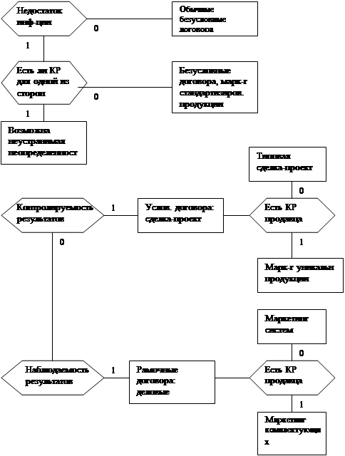 Разрабатывается система, где реализованы отдельные компоненты, потом из этих блоков формируется конкретное решение. Приняв первое решение, ограничиваем себе коридор решений. Отличие от маркетинга уникальной продукции в том, что при разработке системы возникают издержки, которые разработчиков вынужден компенсировать сам (за счет многих пользователей). Результаты сделки наблюдаемы, т.к. мы не можем контролировать, что нового выпустит дальше производитель (можем только наблюдать).
