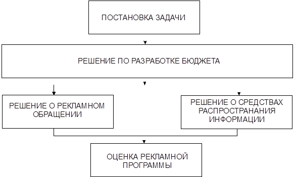 В процессе разработки программы рекламной деятельности руководству службы маркетинга необходимо принять пять важных решений. Они перечислены в схеме№1.