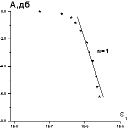 На рис.5 приведена зависимость амплитуды слабой волны A