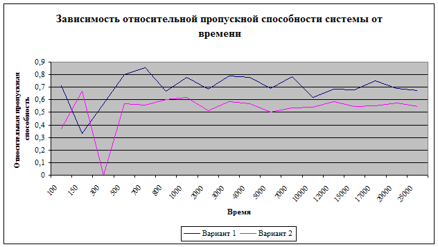 3. График зависимость относительной пропускной способности системы от времени.