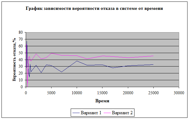 График зависимости вероятности отказа системы от времени.