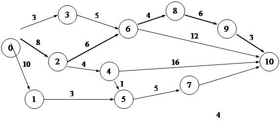 Продолжительность критического пути: 8 + 6 + 4 + 6 + 3 = 27