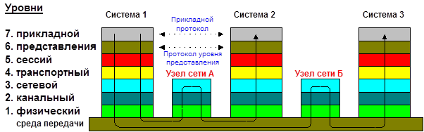 На каждом уровне используются определенные протоколы, которые стандартизируются Международной Организацией по Стандартизации