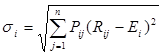 Для измерения риска служат показатели рассеивания, поэтому, чем больше разброс величин возможных доходов, тем больше опасность, что ожидаемый доход не будет получен. Таким образом, риск выражается отклонением (причем более низких!) значений доходов от наиболее вероятного значения. Мерой рассеяния является среднеквадратичное отклонение σi) и, чем больше это значение, тем больше риск:В модели Марковитца для измерения риска вместо среднеквадратичного отклонения используется дисперсия Di, равная квадрату σi, так как этот показатель имеет преимущества по технике расчетов.