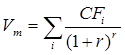 - ожидаемый денежный поток в i-м периоде (обычно год);