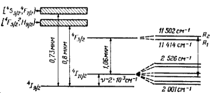 Рис.1. Схема переходов между уровнями энергии ионов неодима