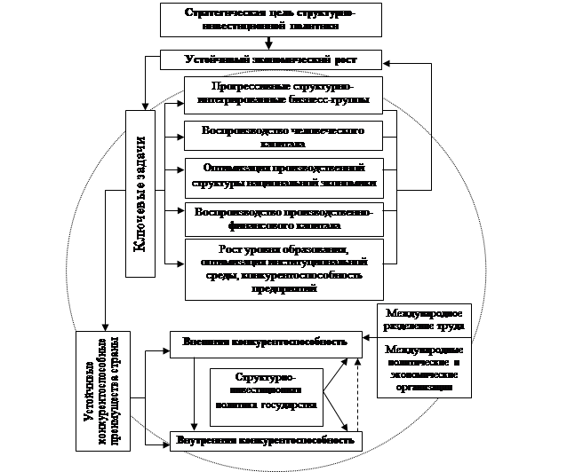 Ключевой задачей структурно-инвестиционных преобразований является проблема выбора стратегии четких ориентиров хозяйственного развития и структурной перестройки экономики. Решение данной проблемы, а также определение и реализация в ее рамках системы приоритетов инвестирования составляют основное содержание структурной составляющей структурно-инвестиционной политики на всех уровнях управления экономикой государства.